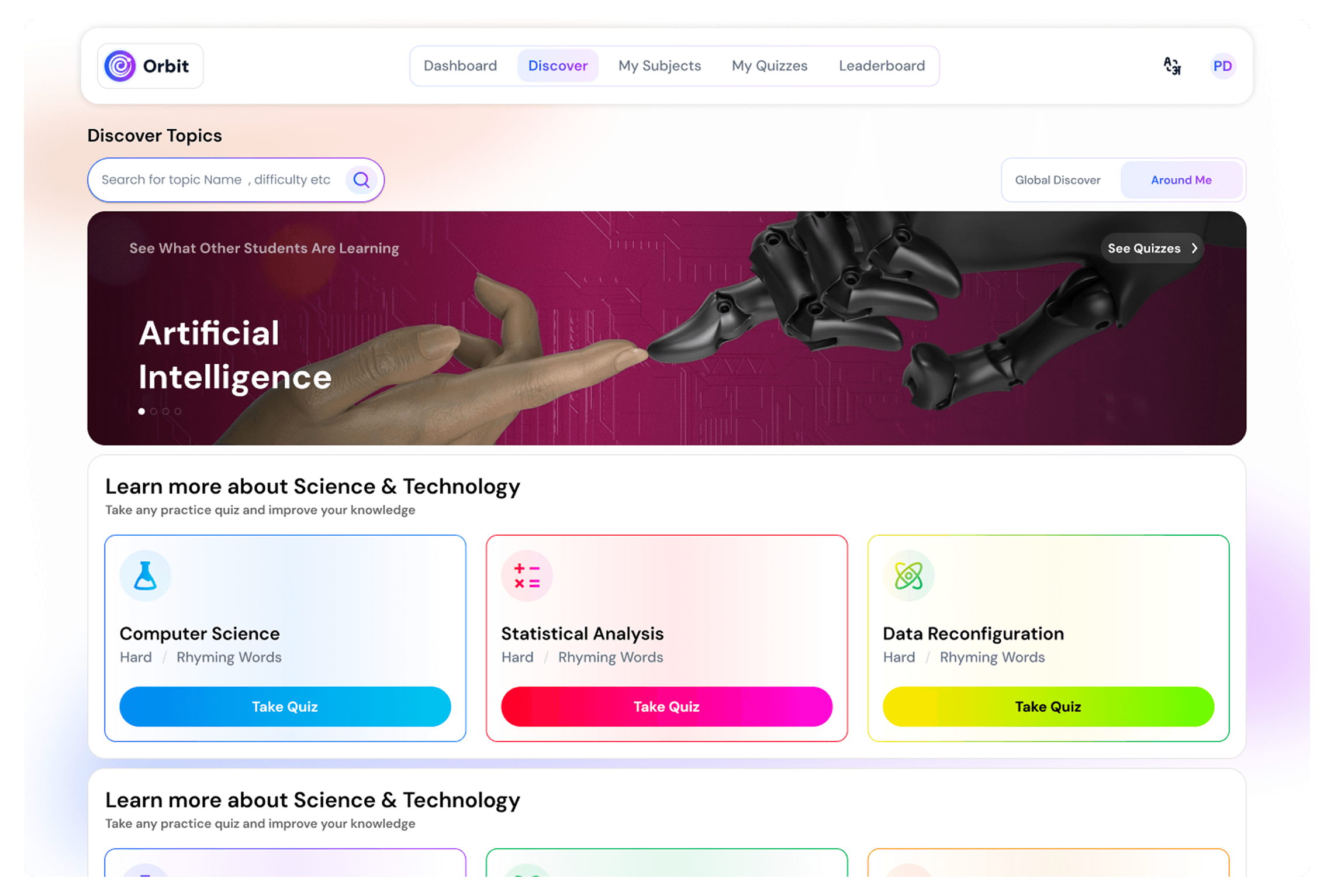 The students can themselves learn anything with a personalised learning system where they pick a topic and get a quiz, based on the results they get recommended learning material such after which they get prompted to take a quiz with different questions or difficulty focusing on the spaced repetition part.