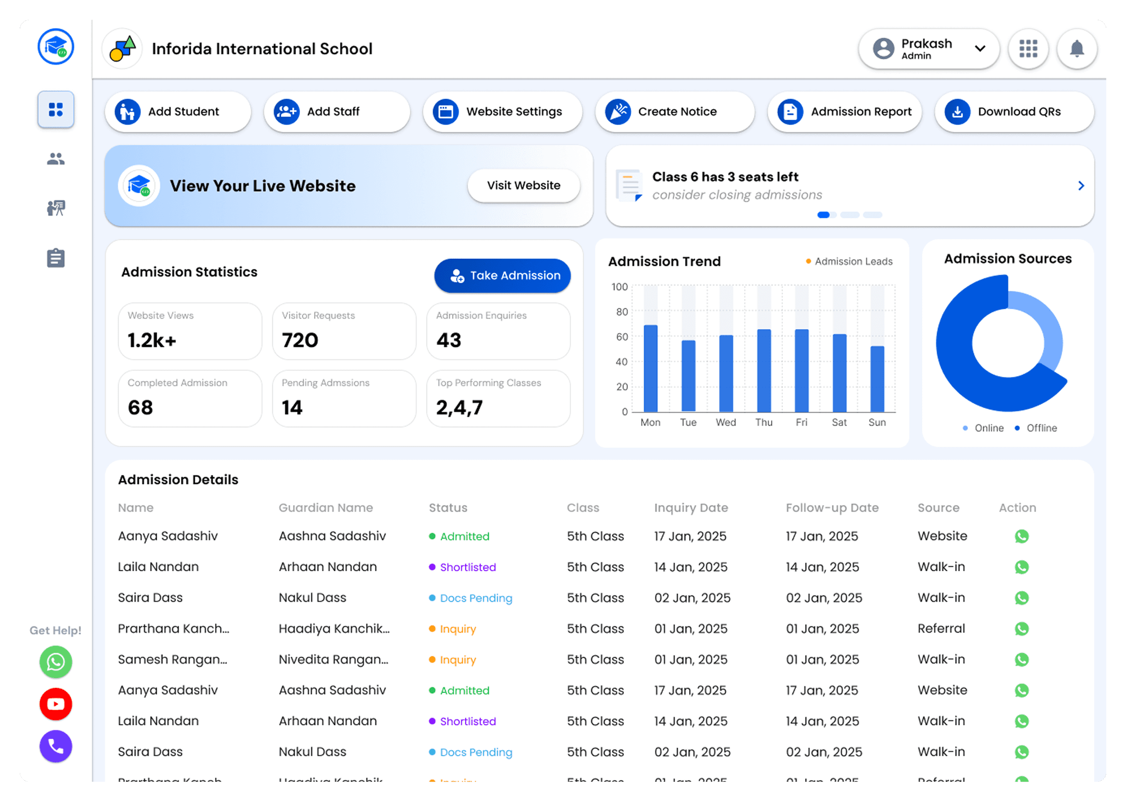 We also added a way to gather admission leads with admission forms submission and school visitor submission this allowed the school admin department to keep a track of leads and follow through easily.