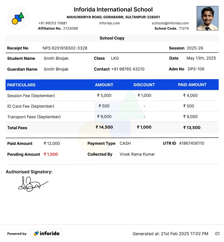 Not an interface but still part of the fee collection experience is the receipt that Parents look at it to verify payment, staff use it to confirm transactions, it has to be clear instantly.